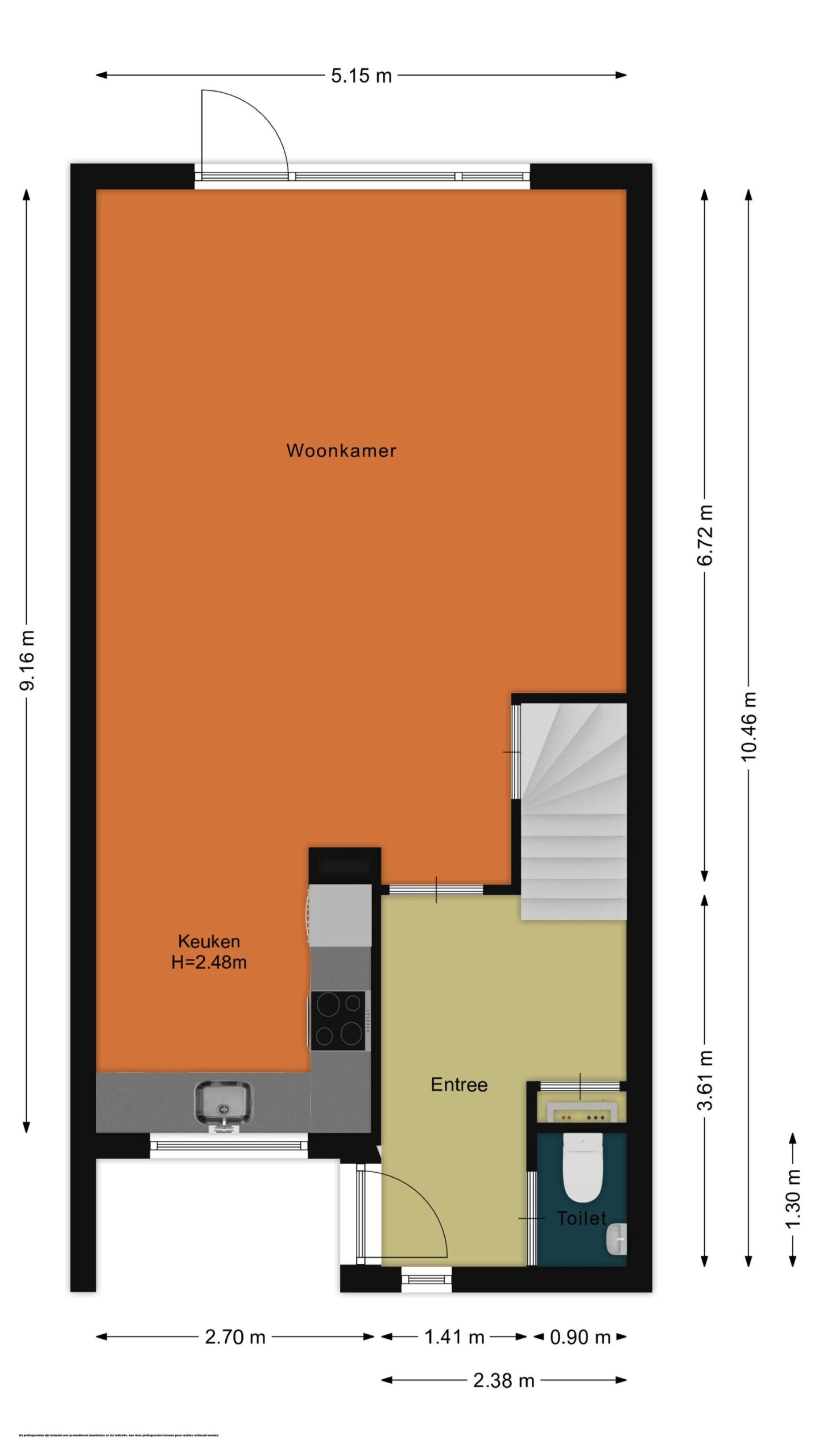 Alle opgegeven maten en oppervlakten zijn indicatief. De oppervlakten zijn gemeten conform de Branche Brede Meetinstructie (BBMI), die is gebaseerd op de NEN2580 norm.