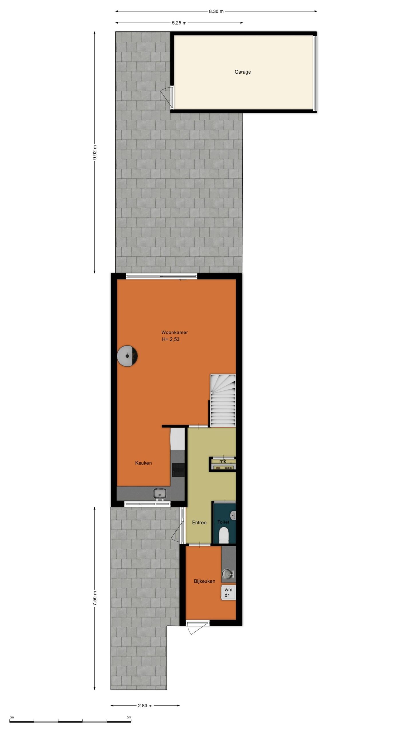 • Achterom via de garage