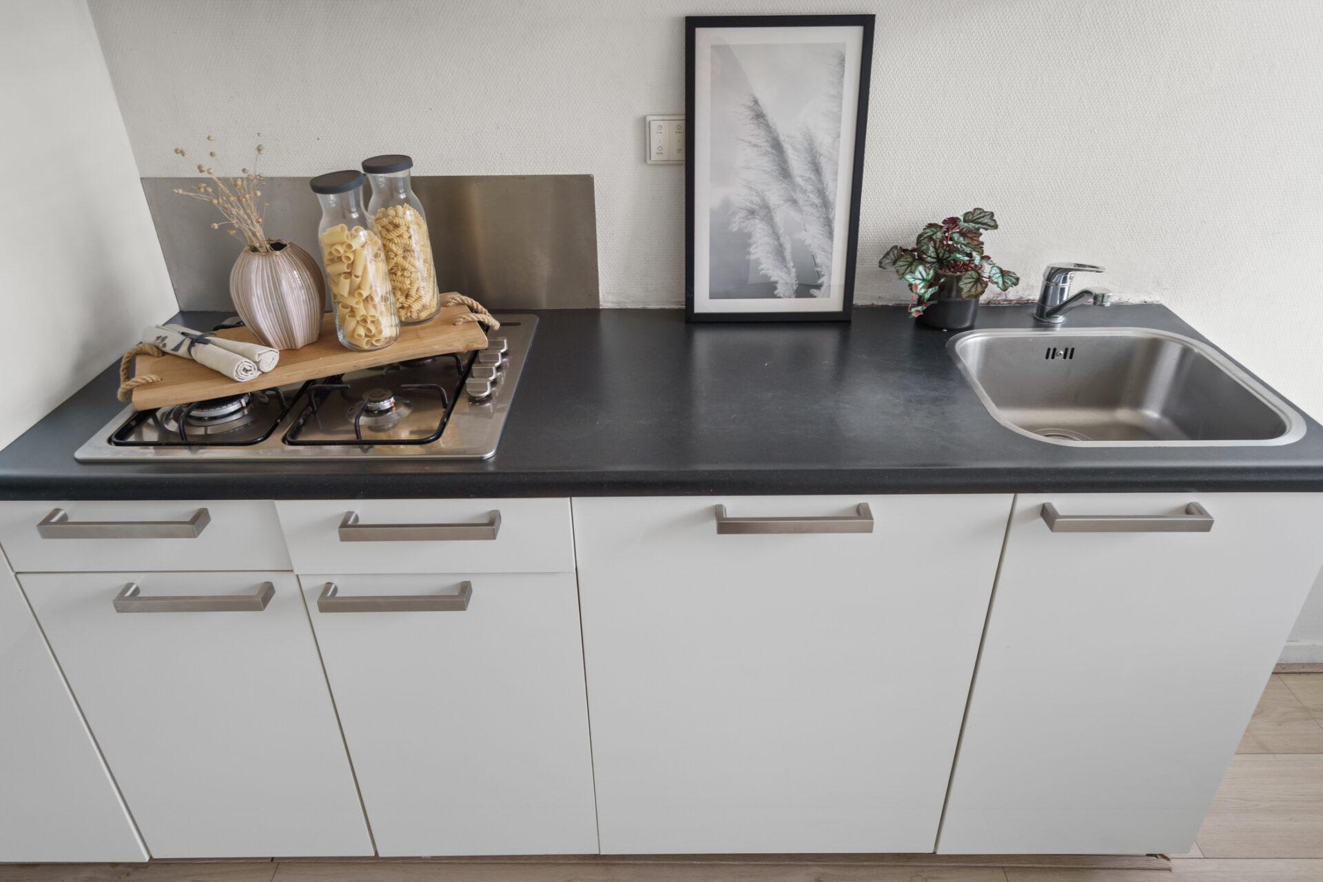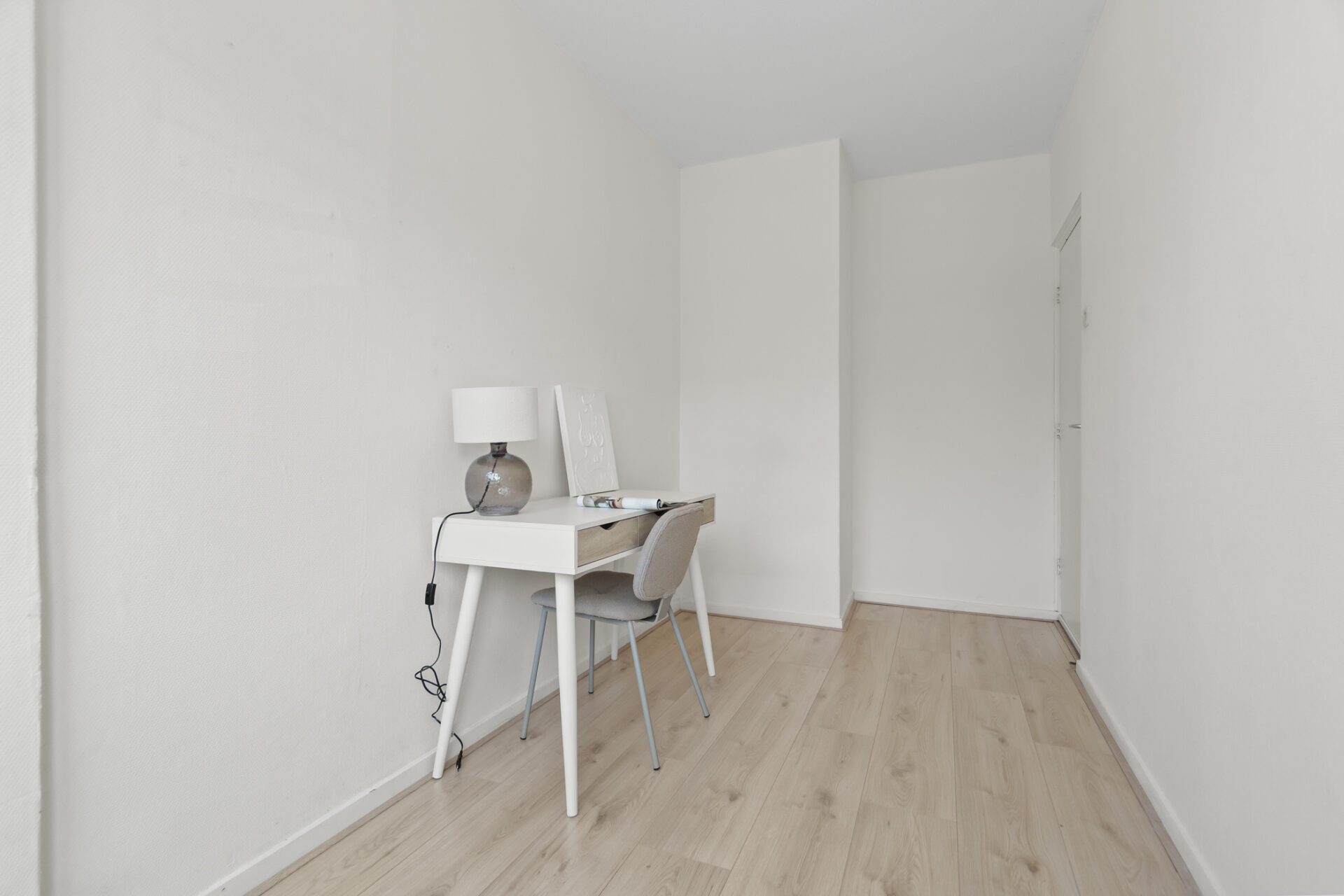 Het gehele appartement is v.v. een laminaatvloer en met glasvliesbehang afgewerkte wanden.