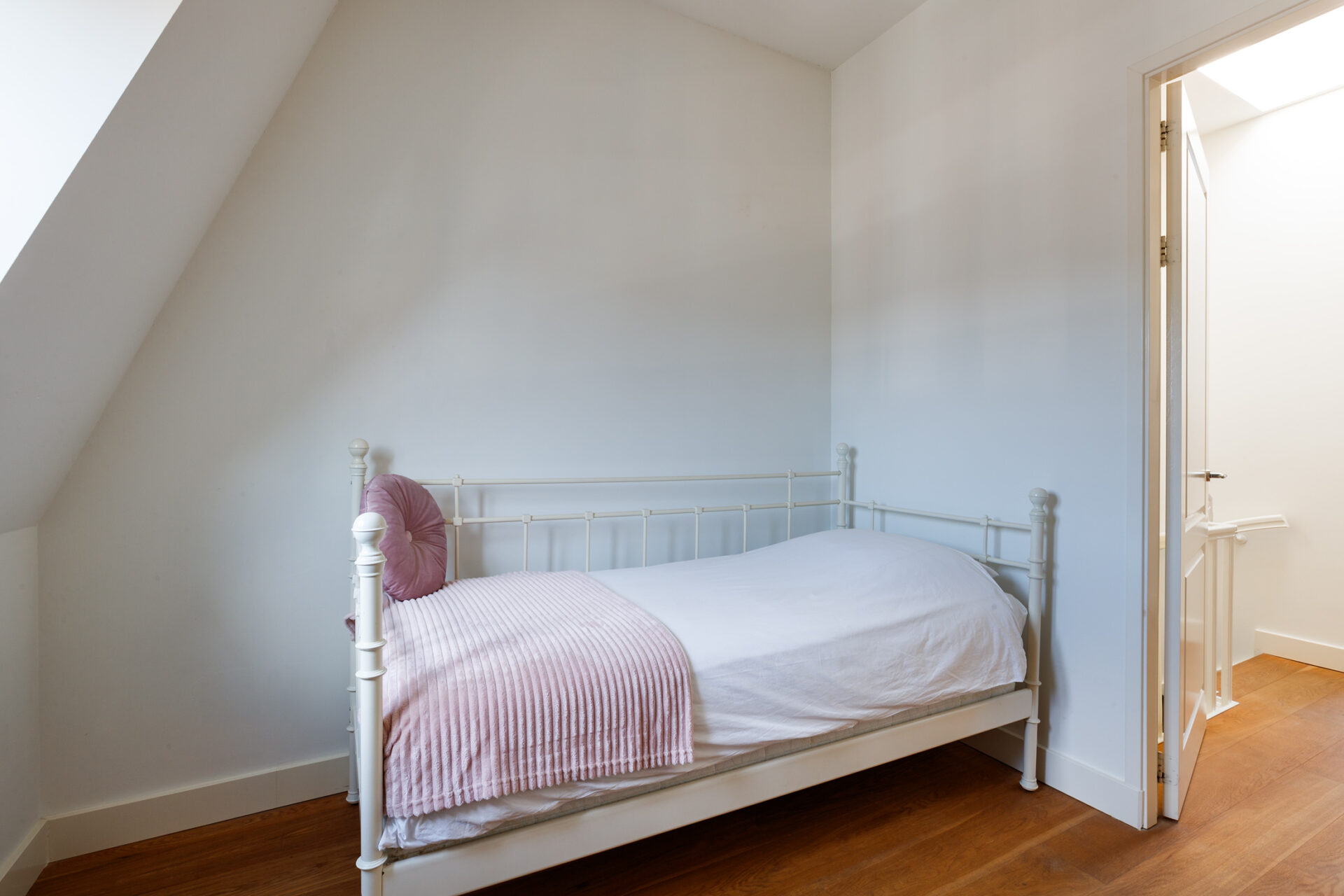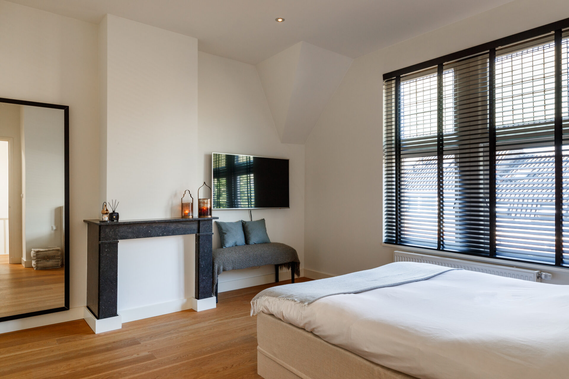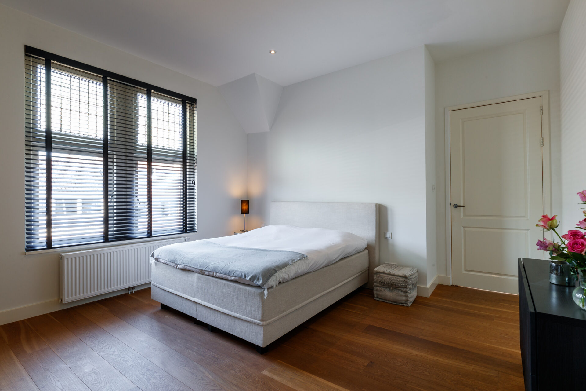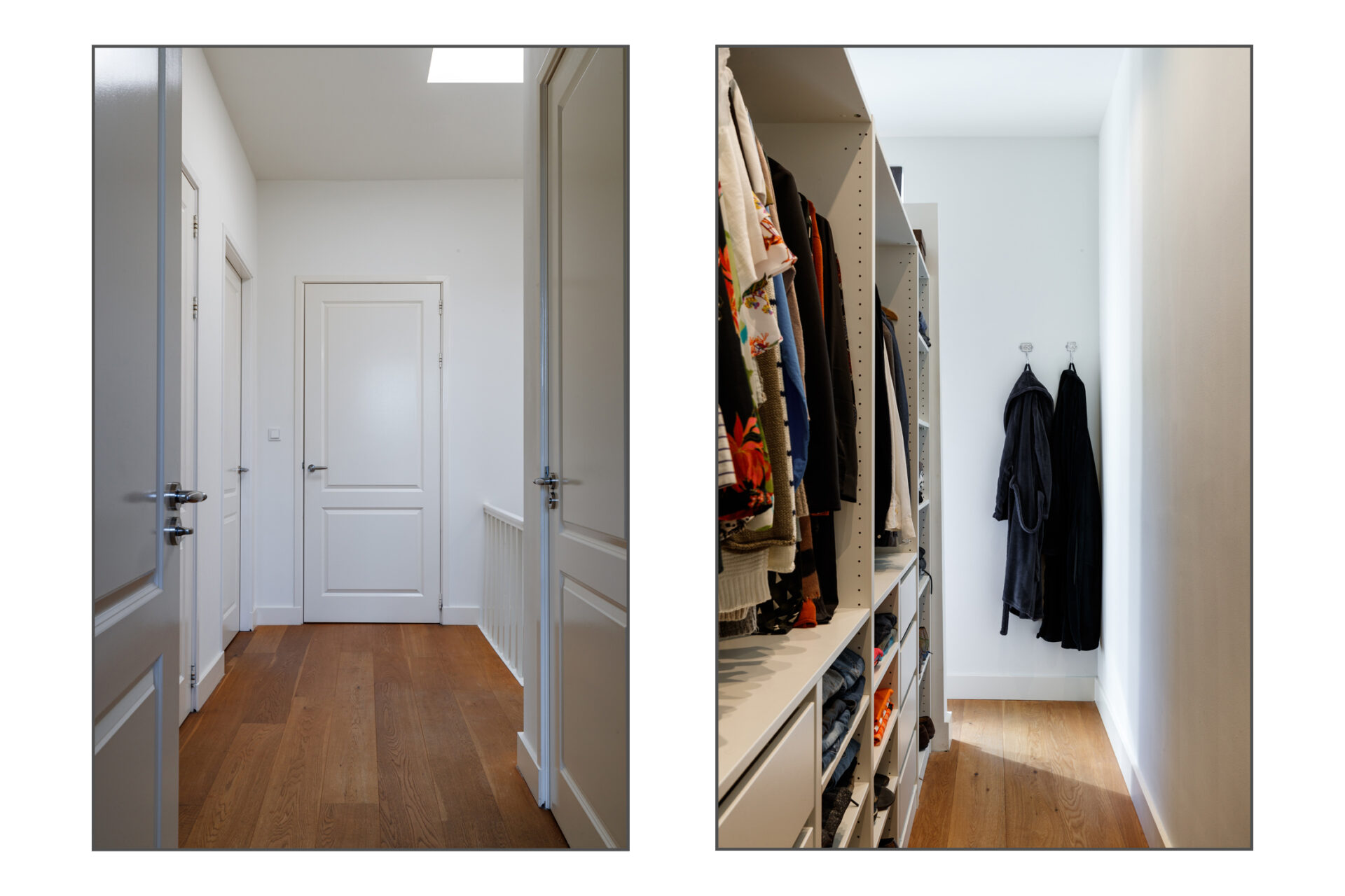 Tweede verdieping: vanuit de hal middels de zwart gestoffeerde trap toegang tot de tweede verdieping. De overloop is lekker licht door de lichtkoepel. Er zijn drie slaapkamers op deze verdieping. De slaapkamer aan de voorzijde is zeer ruim en sfeervol met schouw en heeft een inloopkast. Hiernaast is een gezellige slaapkamer met dakkapel. Aan de achterzijde is een mooie grote slaapkamer met open kledingkast achter het bed. In het midden van de verdieping is een grote inpandige berging met lichtkoepel. Toilet met fontein is separaat van de luxe badkamer. De badkamer is voorzien van een grote inloopdouche en een wandmeubel met twee wastafels. Er is een aparte ruimte voor de wasmachine gecreëerd.