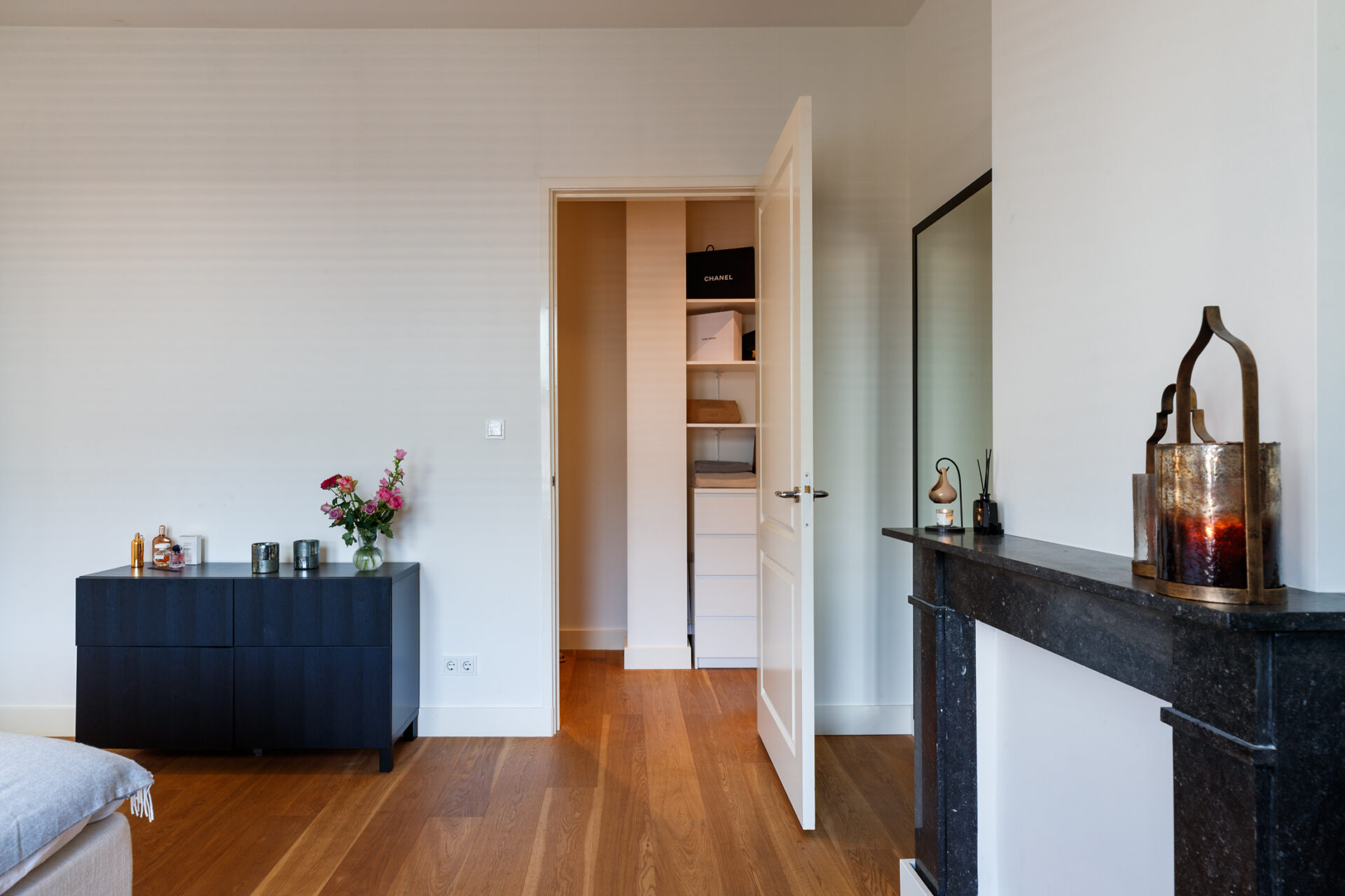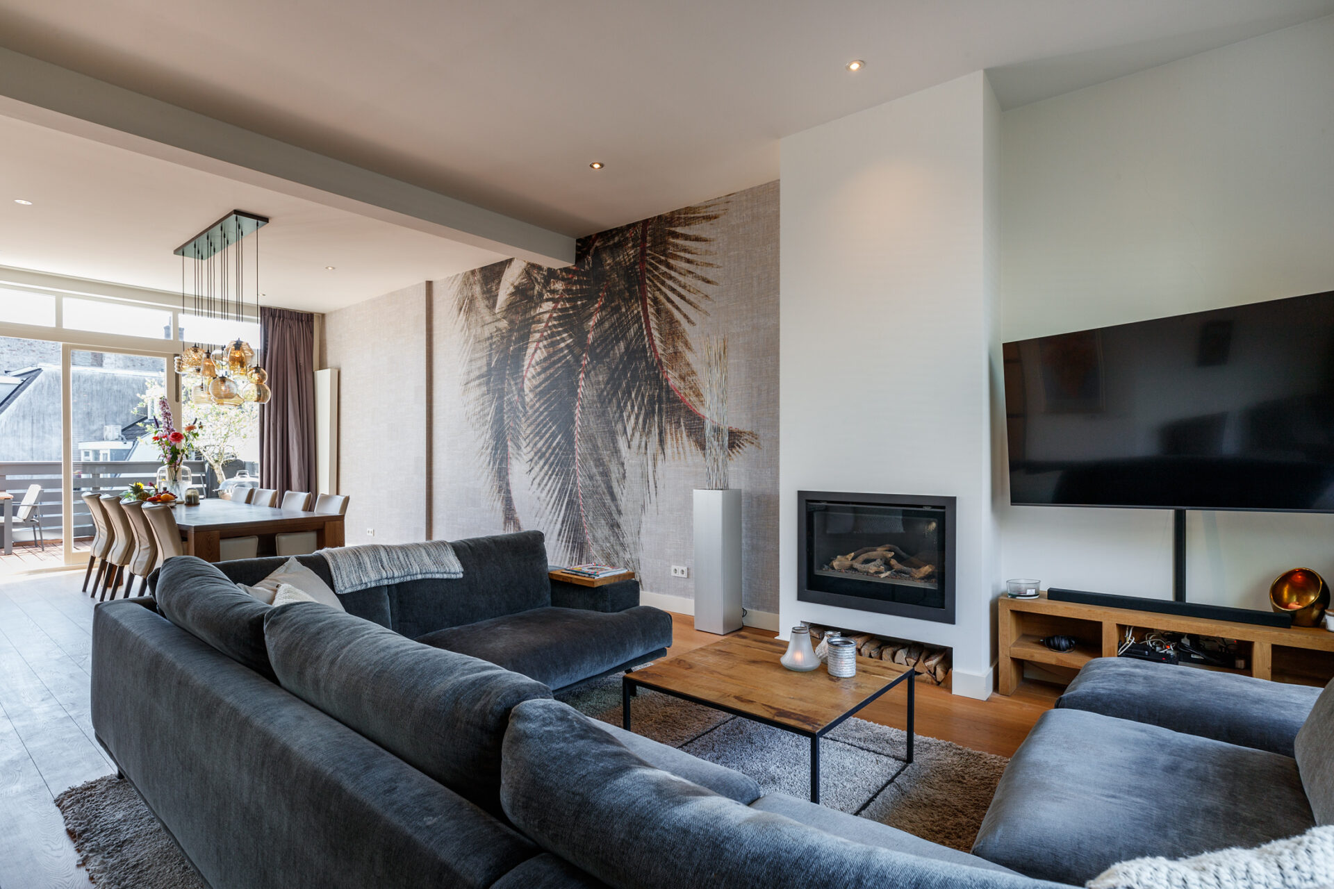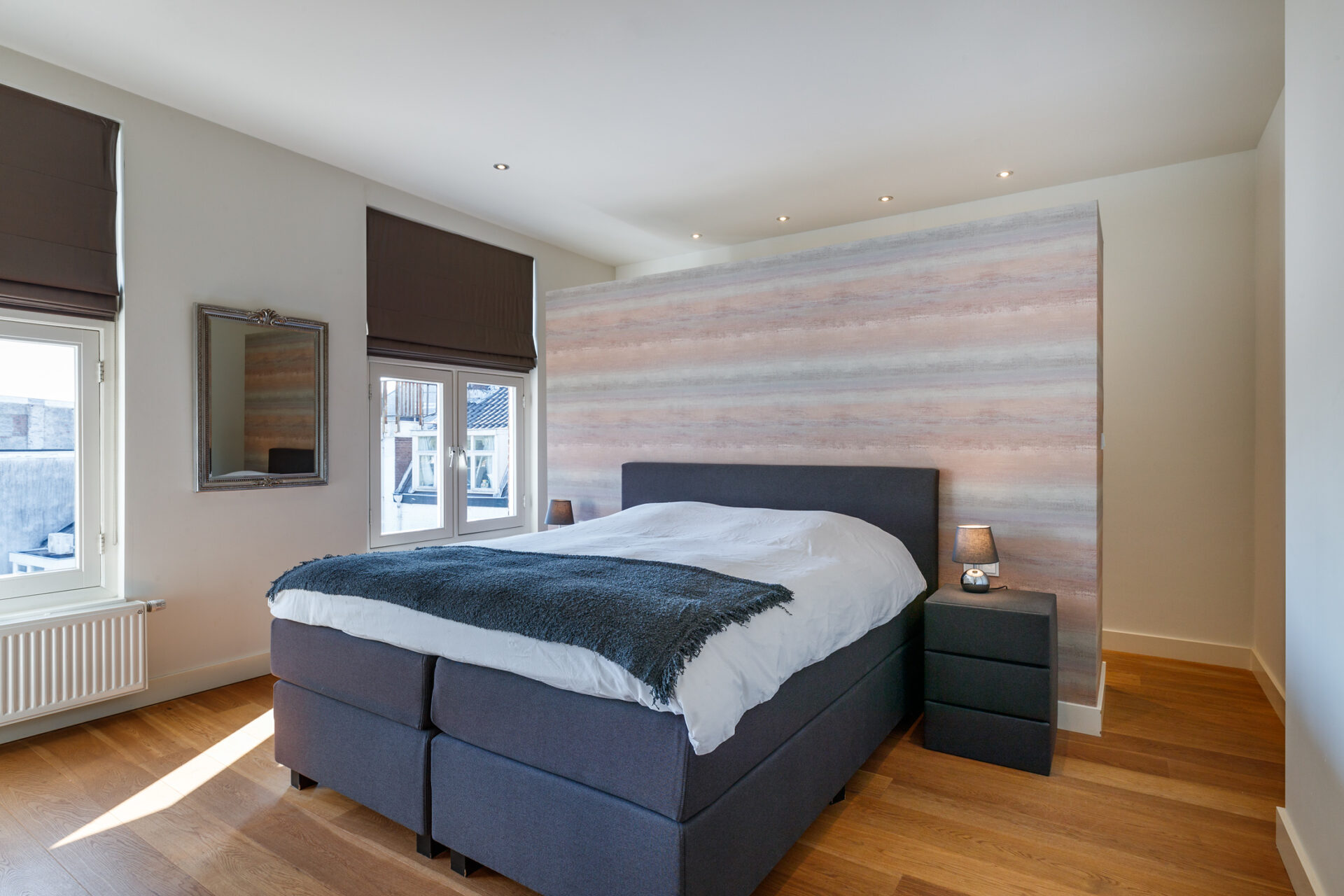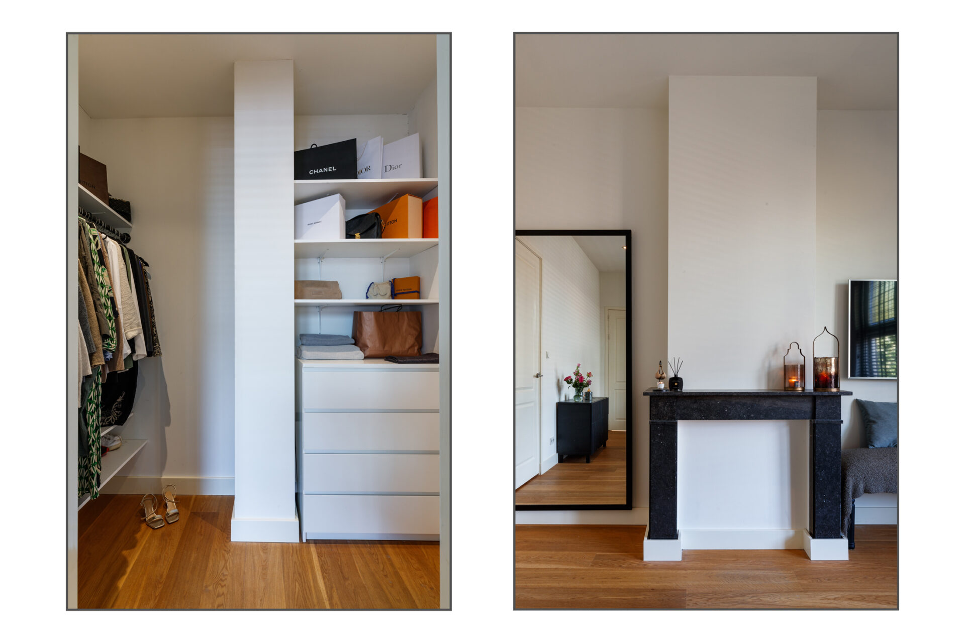 Tweede verdieping: vanuit de hal middels de zwart gestoffeerde trap toegang tot de tweede verdieping. De overloop is lekker licht door de lichtkoepel. Er zijn drie slaapkamers op deze verdieping. De slaapkamer aan de voorzijde is zeer ruim en sfeervol met schouw en heeft een inloopkast. Hiernaast is een gezellige slaapkamer met dakkapel. Aan de achterzijde is een mooie grote slaapkamer met open kledingkast achter het bed. In het midden van de verdieping is een grote inpandige berging met lichtkoepel. Toilet met fontein is separaat van de luxe badkamer. De badkamer is voorzien van een grote inloopdouche en een wandmeubel met twee wastafels. Er is een aparte ruimte voor de wasmachine gecreëerd.
