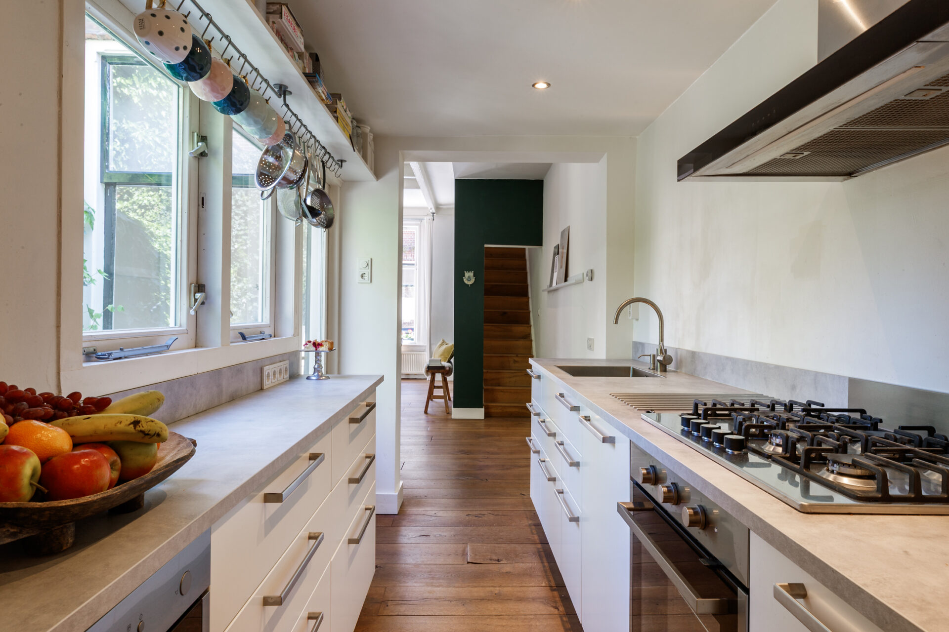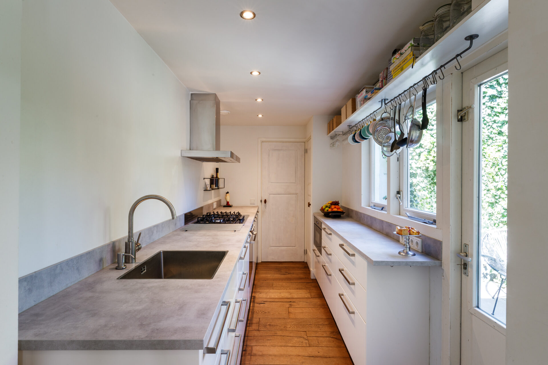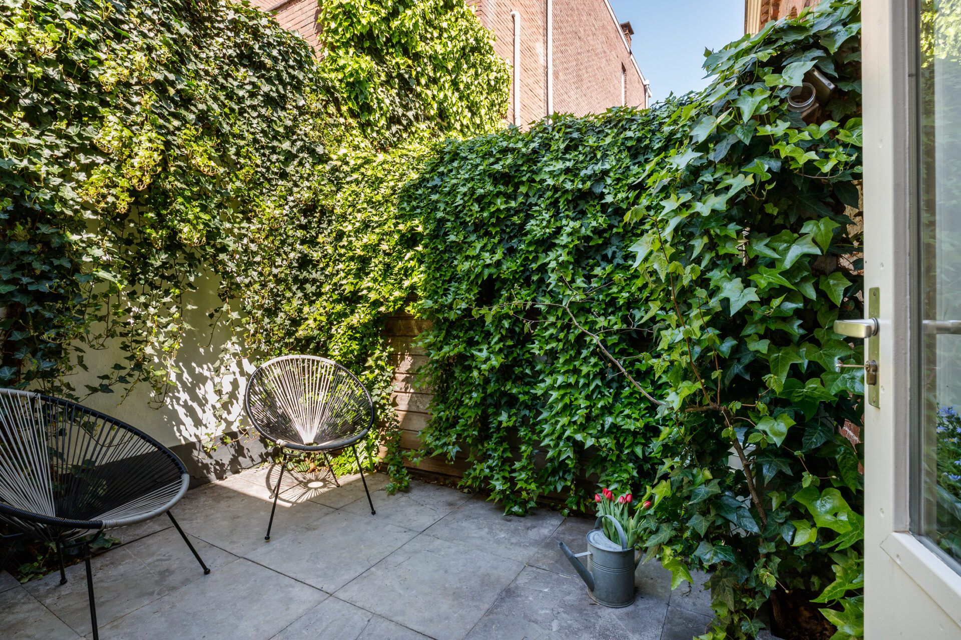 Vanuit de keuken stap je in je eigen patio tuin. Prachtig om zo’n rustig plekje in de stad voor jezelf te hebben!