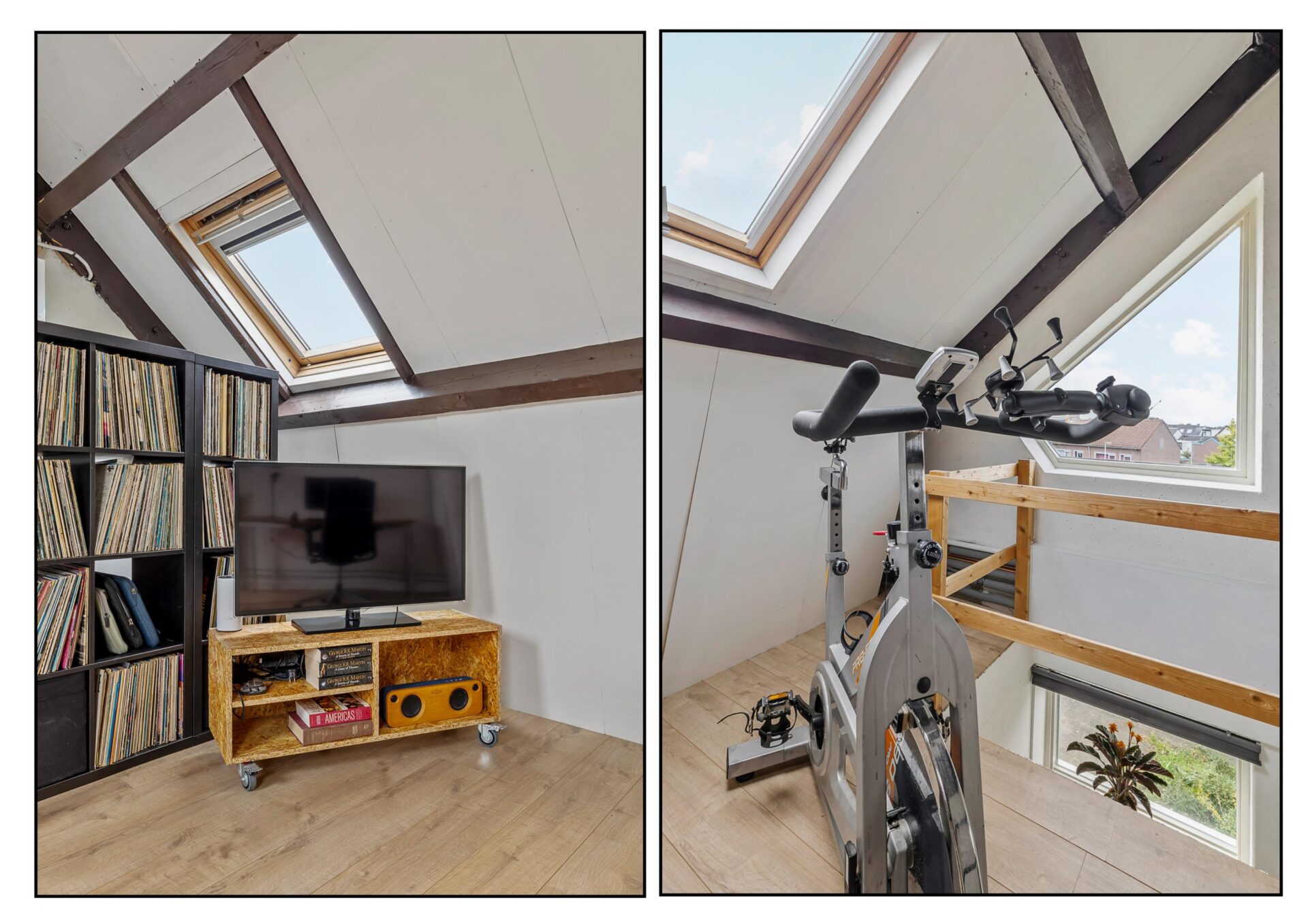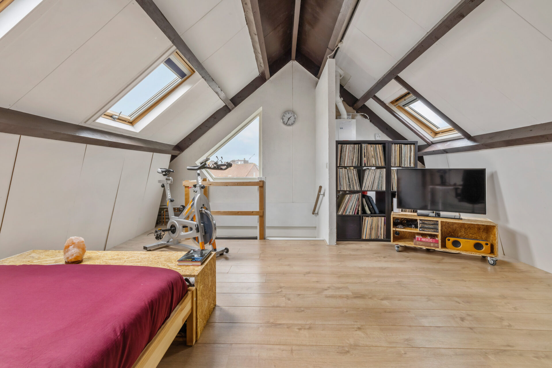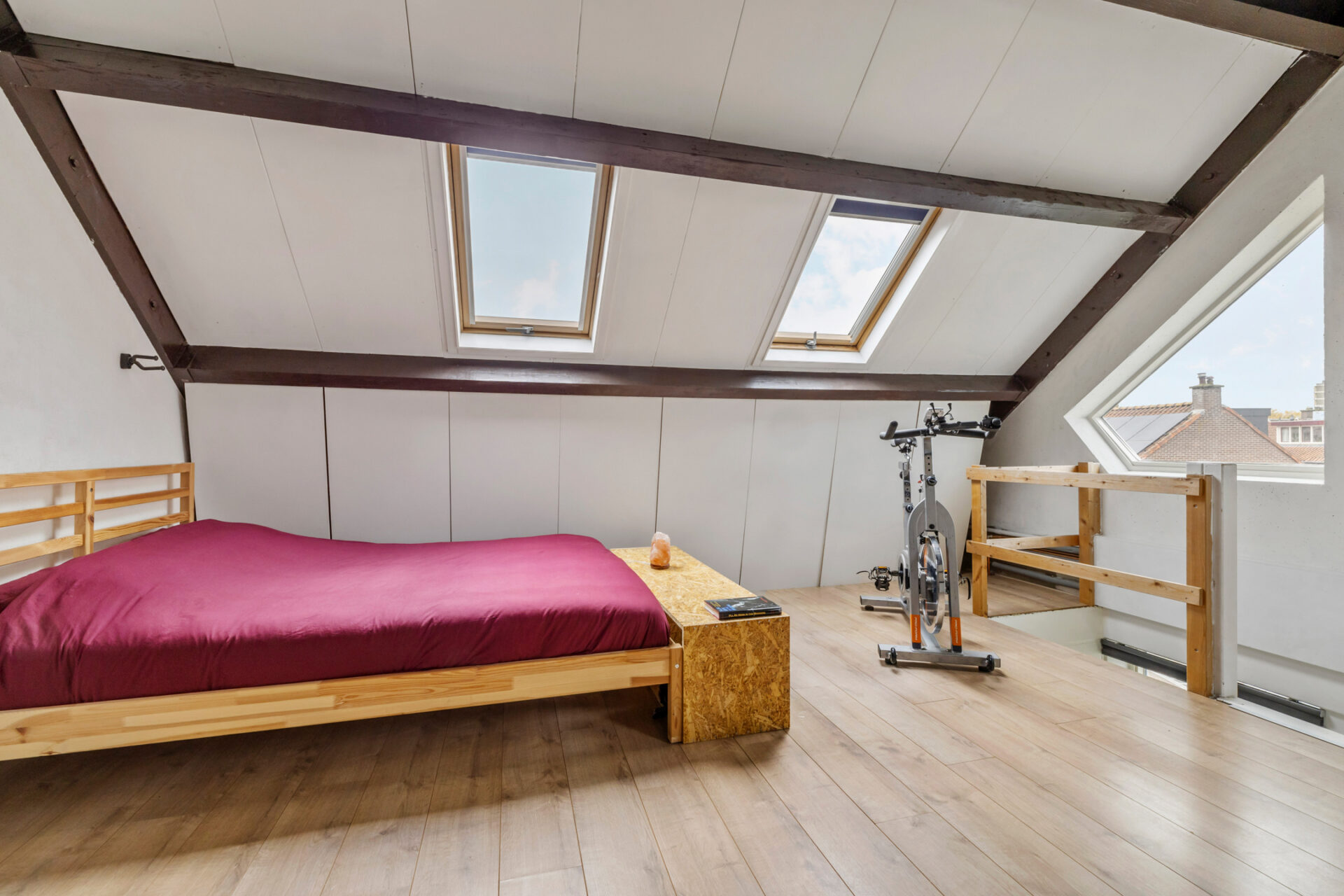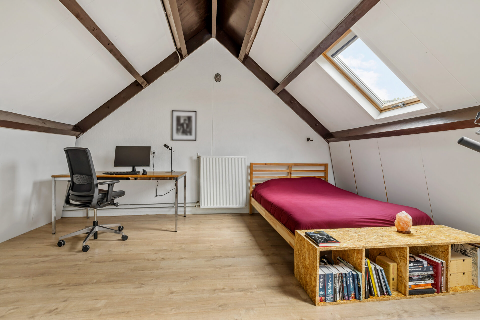 Via vaste trap te bereiken open zolderverdieping. De zolder is thans in gebruik als logeerkamer, werkkamer en sportruimte. Verder bevindt zich op deze verdieping de aansluiting voor de cv-ketel en is er achter de knieschotten veel bergruimte. De drie dakramen en het zijraam zorgen voor veel lichtinval. Het is eenvoudig om een of meerdere afgesloten kamers te creëren.